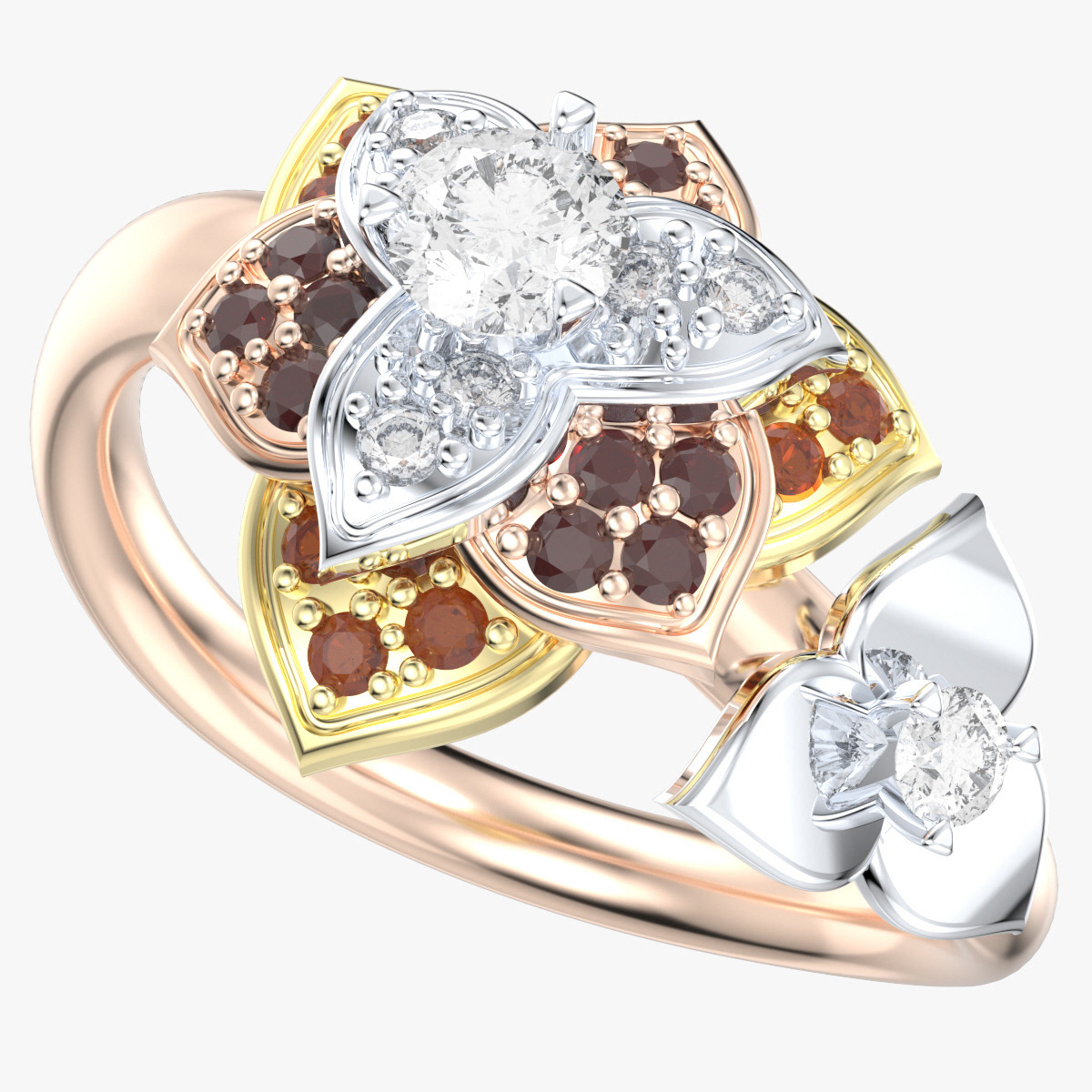 Diamond Flower Leaf Women Ring 3D CAD Design-R001G